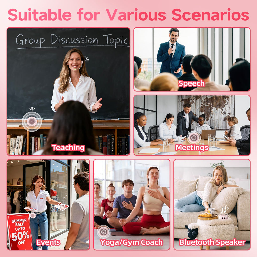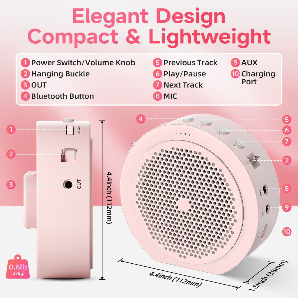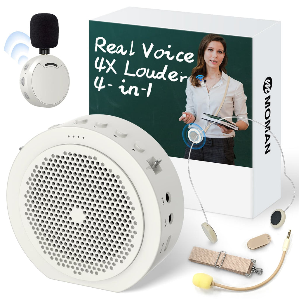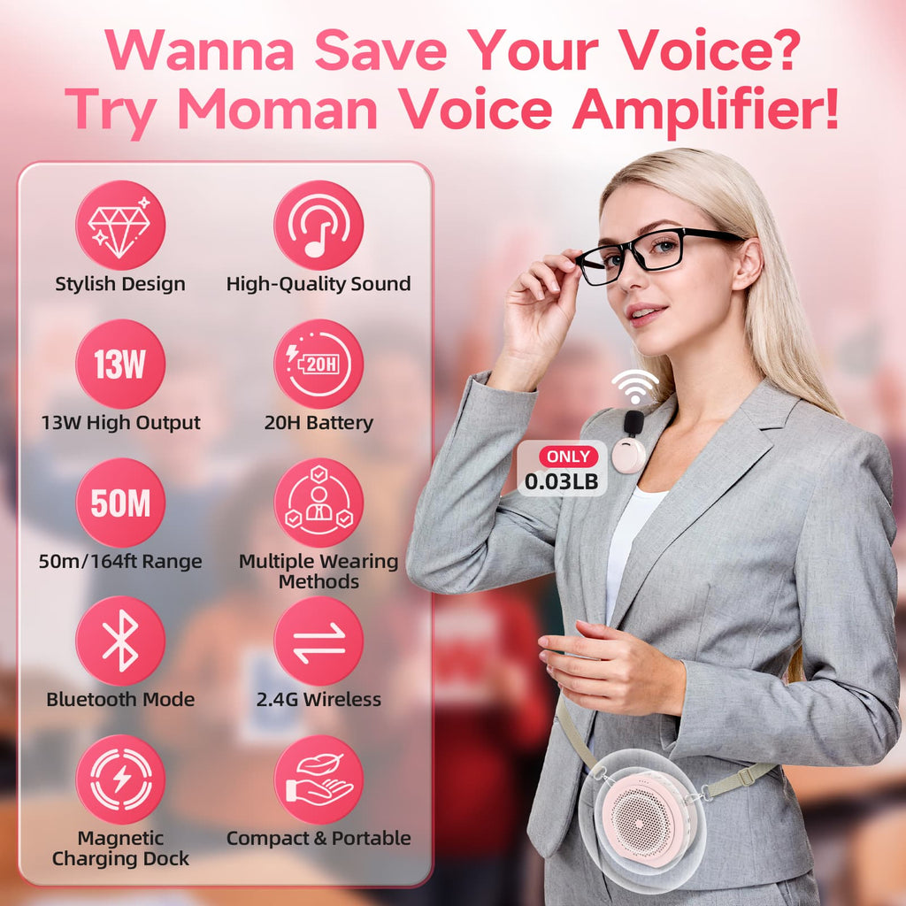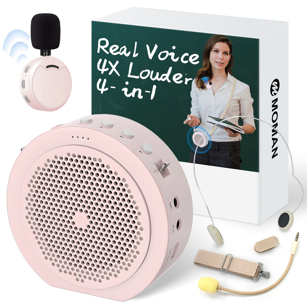 Moman A6 Max Bluetooth Voice Amplifier with Wireless Microphone, 164ft Range, Magnetic Mic Charging Dock, Available in Pink and White